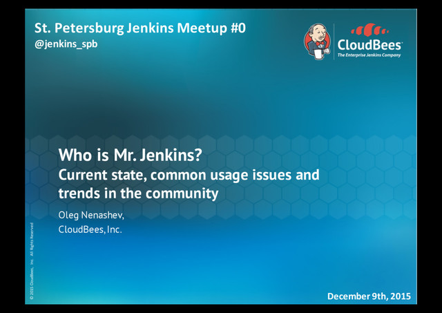 English version of https://speakerdeck.com/onenashev/spb-jenkins-meetup-number-0-who-is-mr-jenkins , which has been presented at St. Petersburg Jenkins meetup.