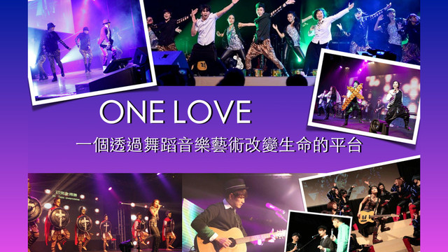 每個⼈人都需要愛 也能去愛每個⼈人 這就是 ONE LOVE 所以我們創造了⼀一個 舞蹈⾳音樂及藝術結合的交流平台 ONE LOVE 核⼼心