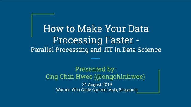 In this talk, I will be sharing about common bottlenecks in data processing within a data science pipeline - especially in a young data science team getting started with real-world data. I will also be exploring various approaches such as parallel processing and Just-In-Time (JIT) compiling that could be used to speed up your data processing codes so that you could focus more on getting value out of your data.