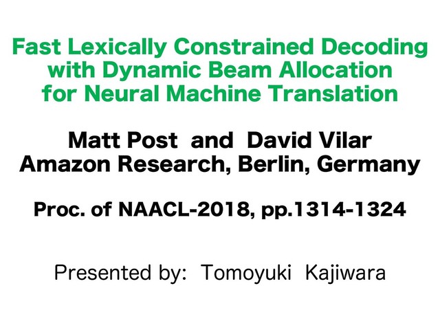 [論紹介] Fast Lexically Constrained Decoding with ...