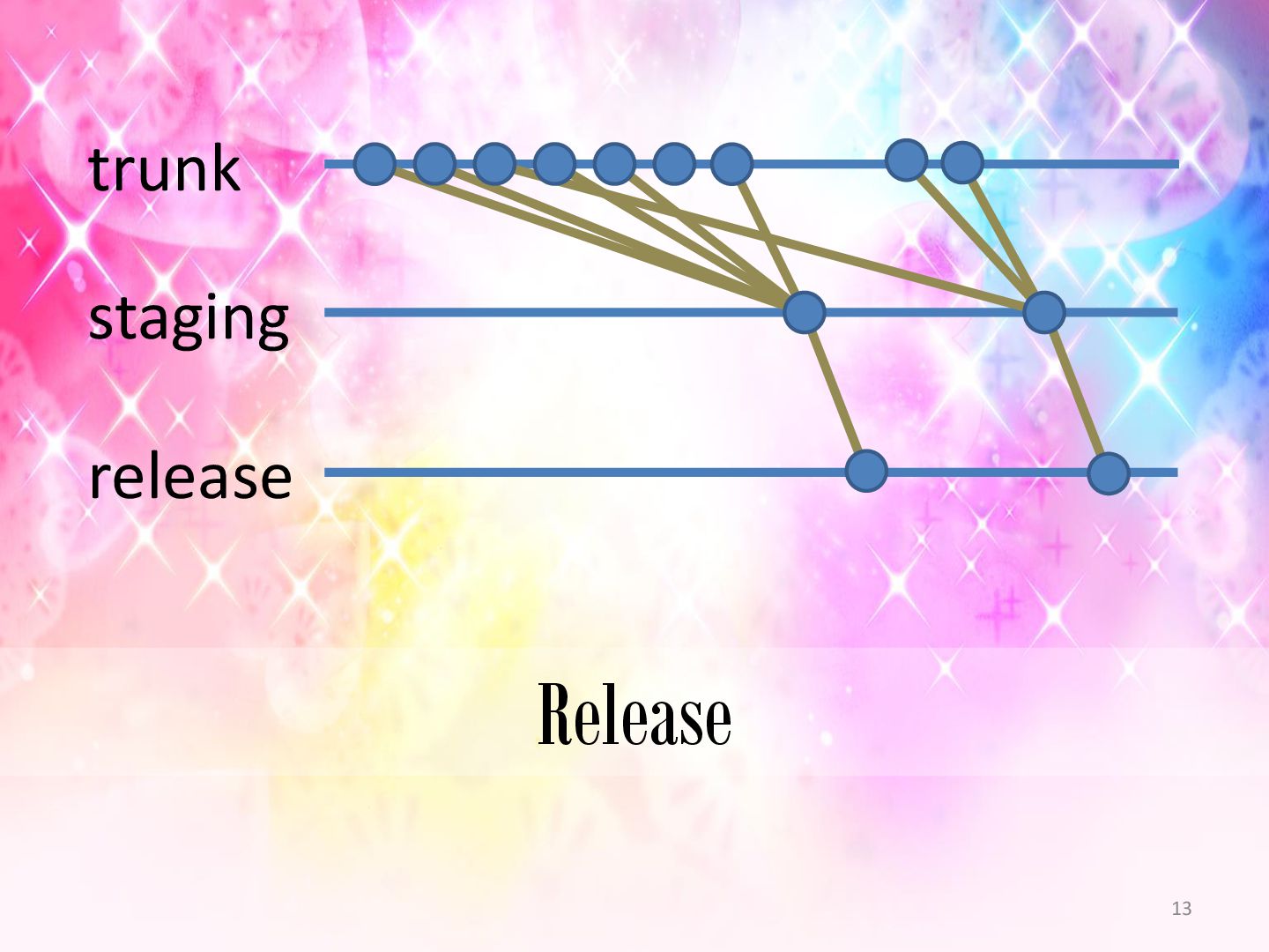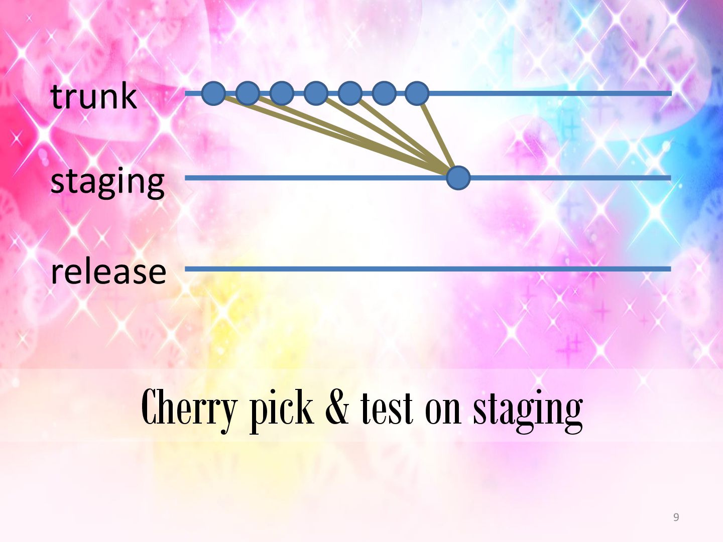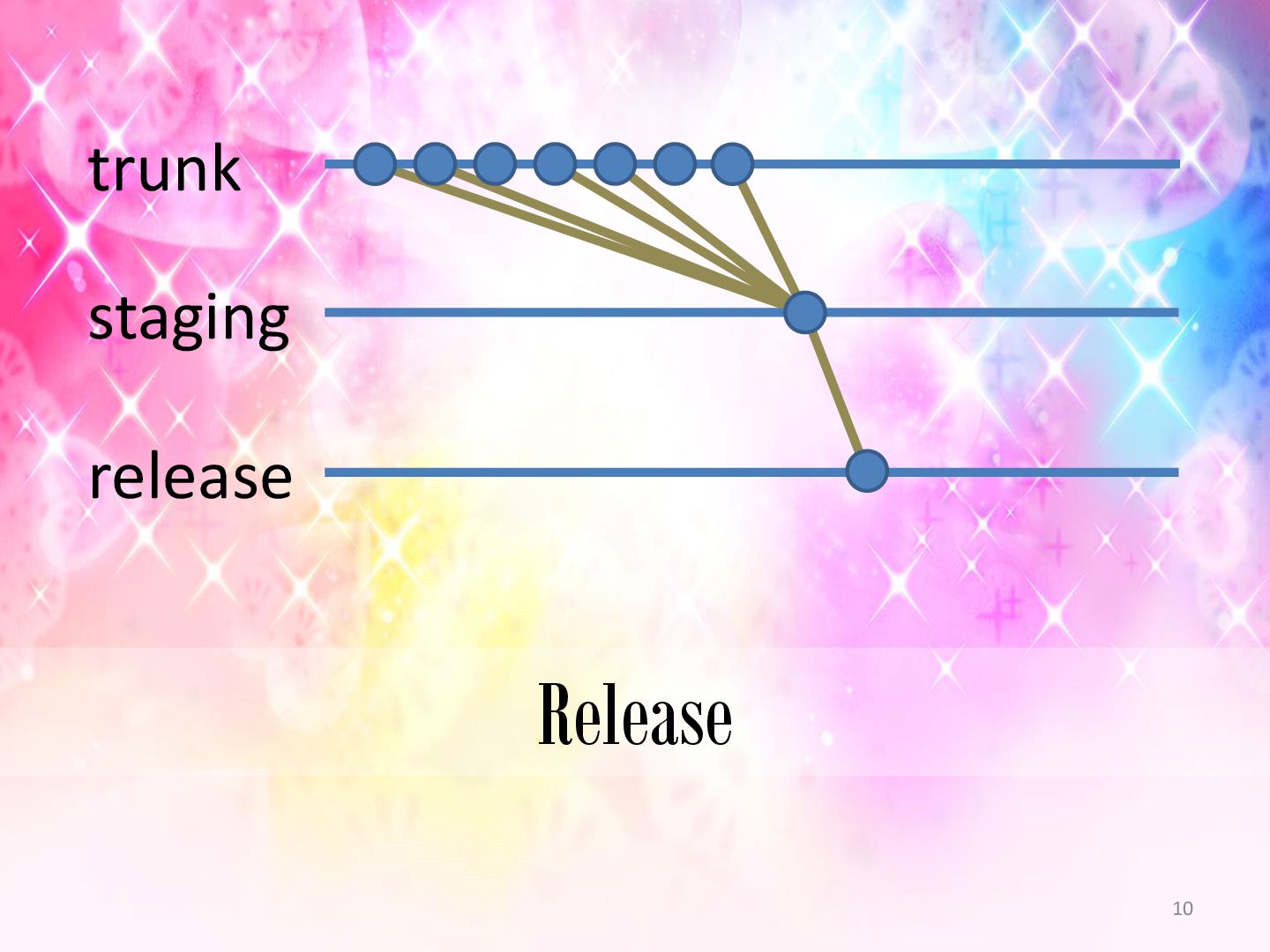 「重要なので、svnで失礼します」 – リリースフローはsvnのまま変えない • まずgitに慣れてもらって、その間に cherry-pickが必要なリリースフローを直 す