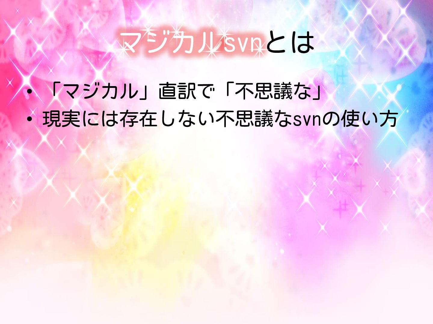 マジカルsvnとは • 「マジカル」直訳で「不思議な」 • 現実には存在しない不思議なsvnの使い方