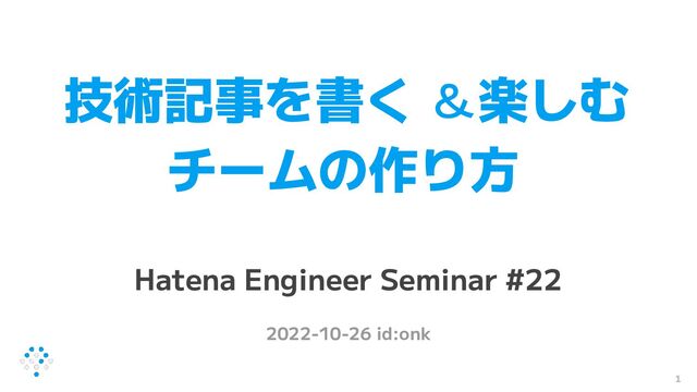 技術記事を書く &楽しむ チームの作り方 Hatena Engineer Seminar #22 2022-10-26 id:onk 1