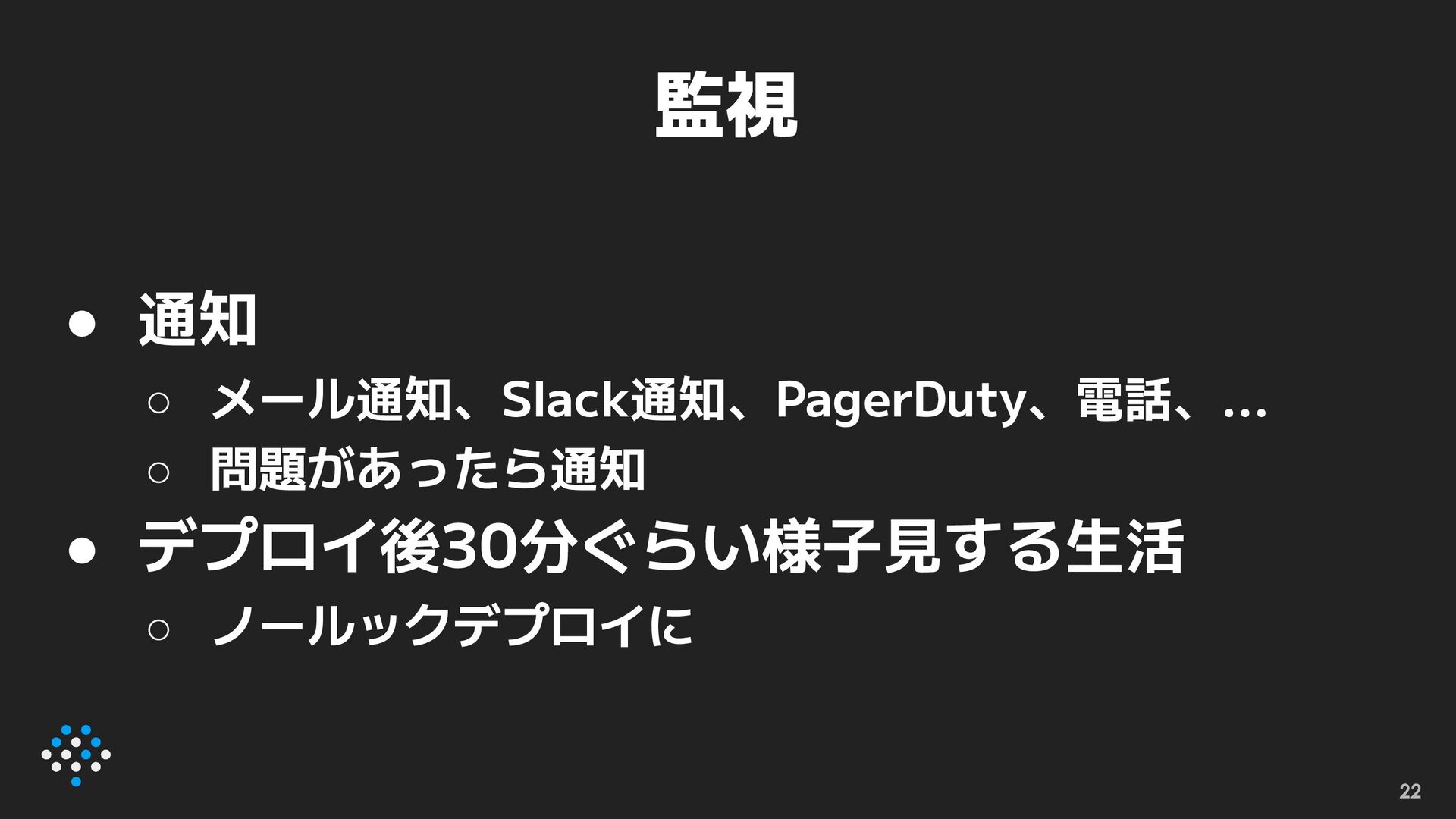 さすがにこれだと困っちゃう • 監視 ◦ 基本自分が見ているし => 見てない ◦ なんかあったらDMくれ =>