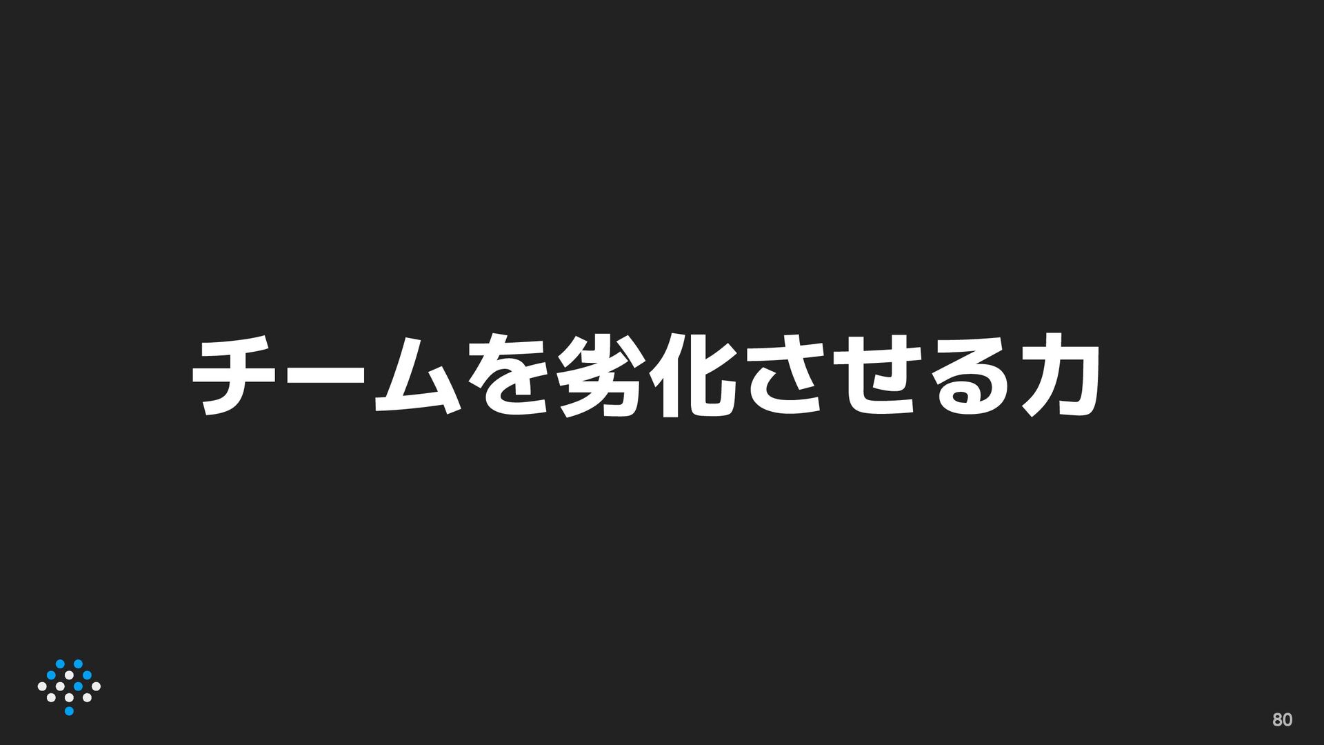 チームを劣化させる力 81 • ハネムーンナンバー ◦ 代謝 • 採用、新卒、異動 • 慣れ