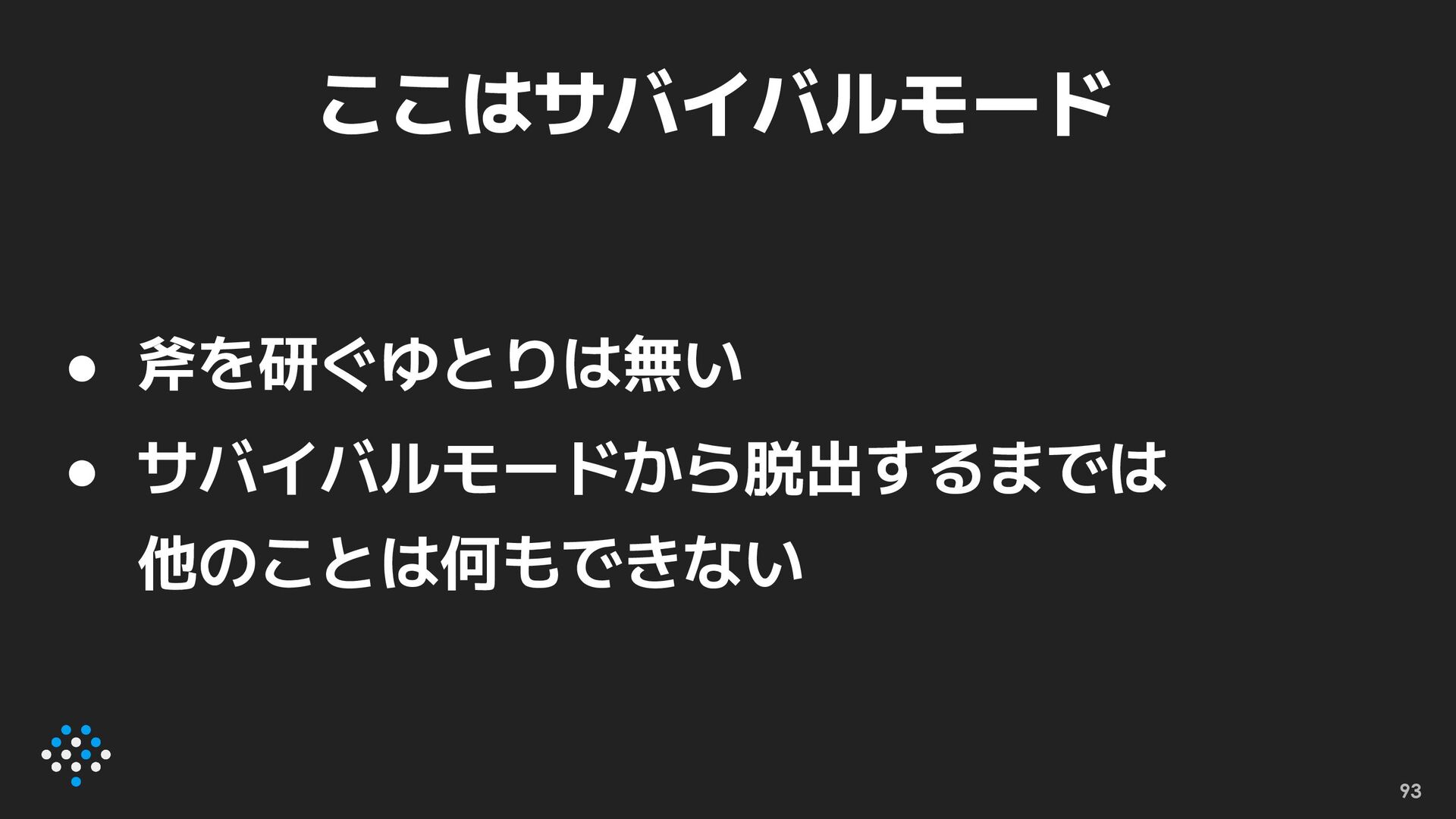 ここはサバイバルモード 93 • 斧を研ぐゆとりは無い • サバイバルモードから脱出するまでは 他のことは何もできない