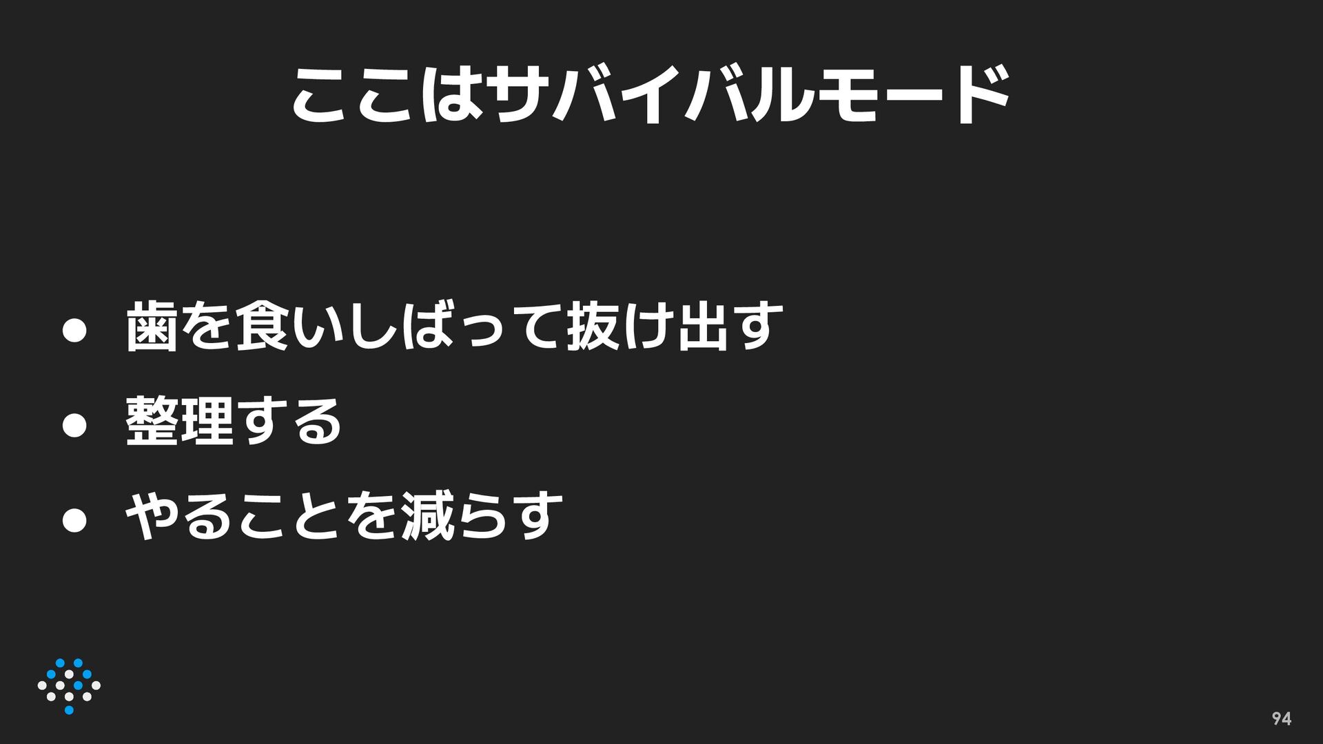 ここはサバイバルモード 94 • 歯を食いしばって抜け出す • 整理する • やることを減らす