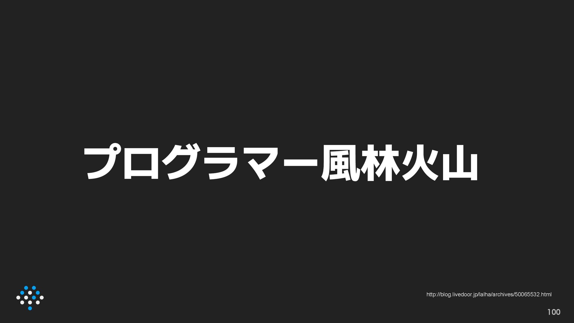 100 プログラマー風林火山 http://blog.livedoor.jp/lalha/archives/50065532.html