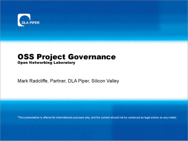 Open Networking Laboratory *This presentation is offered for informational purposes only, and the content should not be construed as legal advice on any matter.