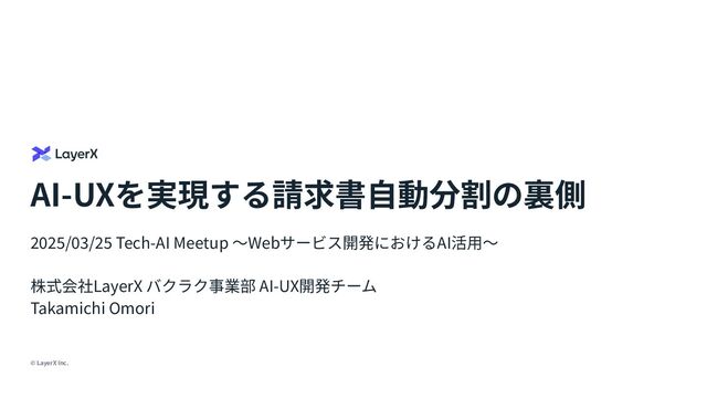 1. © LayerX Inc. 2 X: たか @onsd_ 画像を入れてね 自己紹介 Takamichi