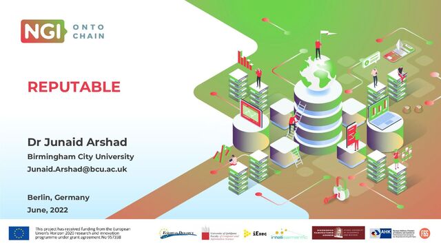 these requirements and has the potential to deliver a cross-platform, privacy-aware reputation system • It leverages blockchain technology to achieve decentralised, verifiable calculation of reputation scores • It enables interaction with end users and systems through a secure reputation analytics dashboard to facilitate user verification and seamless integration with other systems and services REPUTABLE CONCEPT