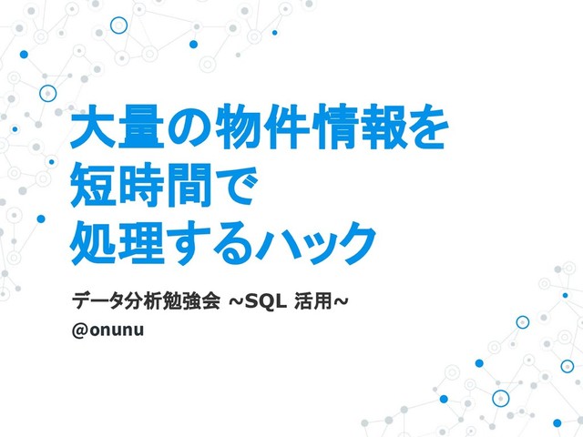 大量の物件情報を 短時間で 処理するハック データ分析勉強会 ~SQL 活用~ @onunu