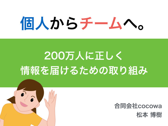 ݸਓ͔ΒνʔϜɻ ߹ಉձࣾDPDPXB দຊതथ ສਓʹਖ਼͘͠ ใΛಧ͚ΔͨΊͷऔΓΈ