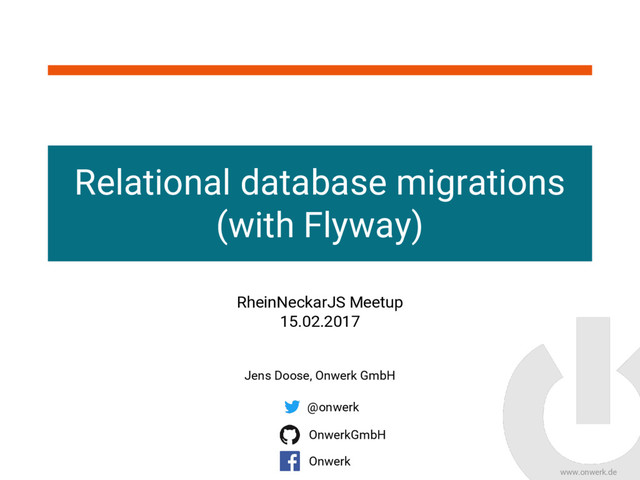 I will show how you can use Flyway to have a consistent way to migrate databases (MySql, Maria, Oracle, SQL Server and a lot more) automatically during deployment/as a part of your continuous deployment process.