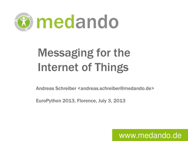 • Implementation includes OAuth stuff • Most complex part was the Java code on Android (error handling etc.) • Deployment on Amazon Web Services Django/Mosquitt o EC2 instance User/Device registry Apps Withings Elastic IP Amazon CloudWatch Alarm SNS developer@med ando.de