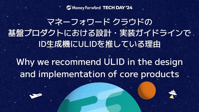 generating trillions of IDs at the same time without any sign of overlap • The specification is lightweight and clear • Unlikely to have updates to the specification • Timestamp-based IDs are compatible with RDB • IDs can be generated on the application layer • 同一時刻に数兆個のIDを生成してぶ つかる気配のない確率 • 仕様が軽量で明確 • 仕様の更新がなさそう • タイムスタンプベースのIDのため、 RDBと相性が良い • アプリケーションでIDを払い出せる