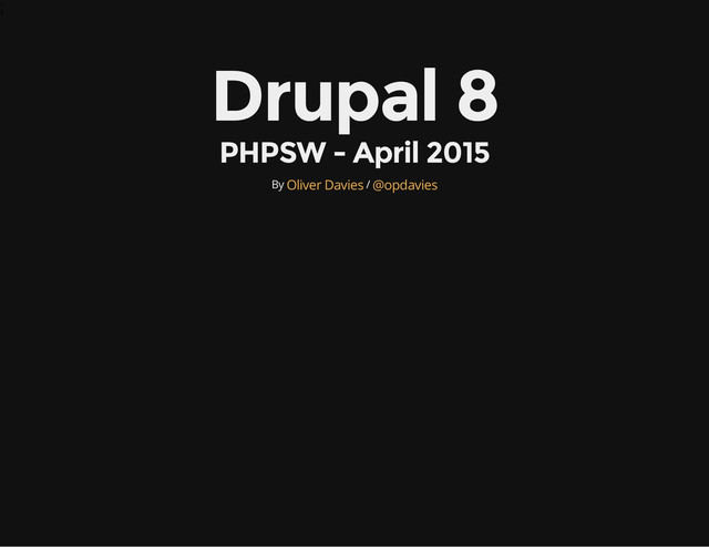 ¡ Drupal 8 PHPSW - April 2015 By / Oliver