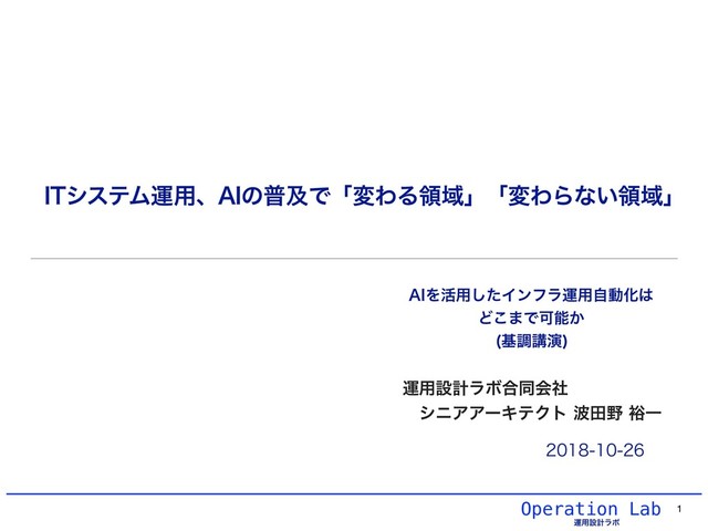 "AIを活用したインフラ運用自動化はどこまで可能か" http://www.keyman.or.jp/pd/10037917/ での基調講演資料です。