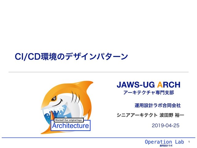 Operation Lab ӡ༻ઃܭϥϘ ӡ༻ઃܭϥϘ߹ಉձࣾ $*$%ڥͷσβΠϯύλʔϯ 1 Architecture 8BOUFE0VSPSJHJOBMMPHP JAWS-UG