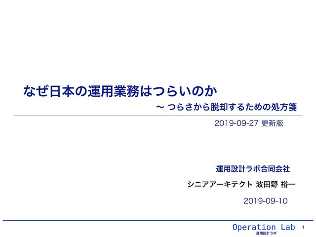 (2019-09-11更新) - 「運用のつらさ」を説明するスライドを追加しました。 - 「海外の仕事のやり方 (運用業務を含む)」セクションを追加しました。