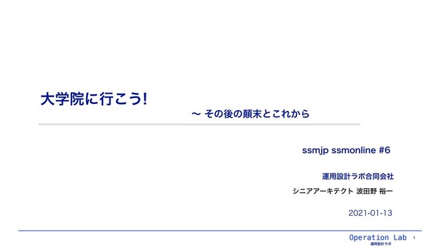 ӡ༻ઃܭϥϘ߹ಉձࣾ Operation Lab ӡ༻ઃܭϥϘ େֶӃʹߦ͜͏ 1 γχΞΞʔΩςΫτా༟Ұ TTNKQTTNPOMJOF ʙͦͷޙͷహͱ͜Ε͔Β