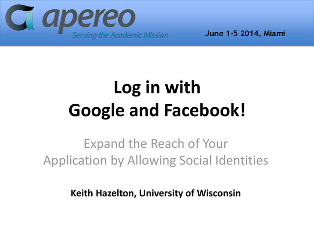 Higher Education has largely embraced federated identity management, which makes it really easy for people to collaborate across universities that belong to the the InCommon federation. But most campuses want to collaborate with people outside the federation, too, like research collaborators, incoming students, alumni, guest faculty, auditors, continuing education students, etc. It can be time-consuming and inefficient to create university identities for these external collaborators, and most of the collaborators already have an identity or two with a social provider like Google, LinkedIn, Facebook, or Twitter. Social-to-SAML gateways are an excellent way to extend university services to non-university collaborators at low cost. This presentation will describe some of the things to look out for when implementing social-to-SAML gateways, and demo a service built by Cirrus Identity that facilitates social-to-SAML integrations.