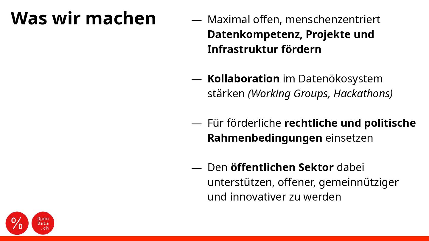 Infrastruktur fördern ― Kollaboration im Datenökosystem stärken (Working Groups, Hackathons) ― Für förderliche rechtliche und politische Rahmenbedingungen einsetzen ― Den öffentlichen Sektor dabei unterstützen, offener, gemeinnütziger und innovativer zu werden