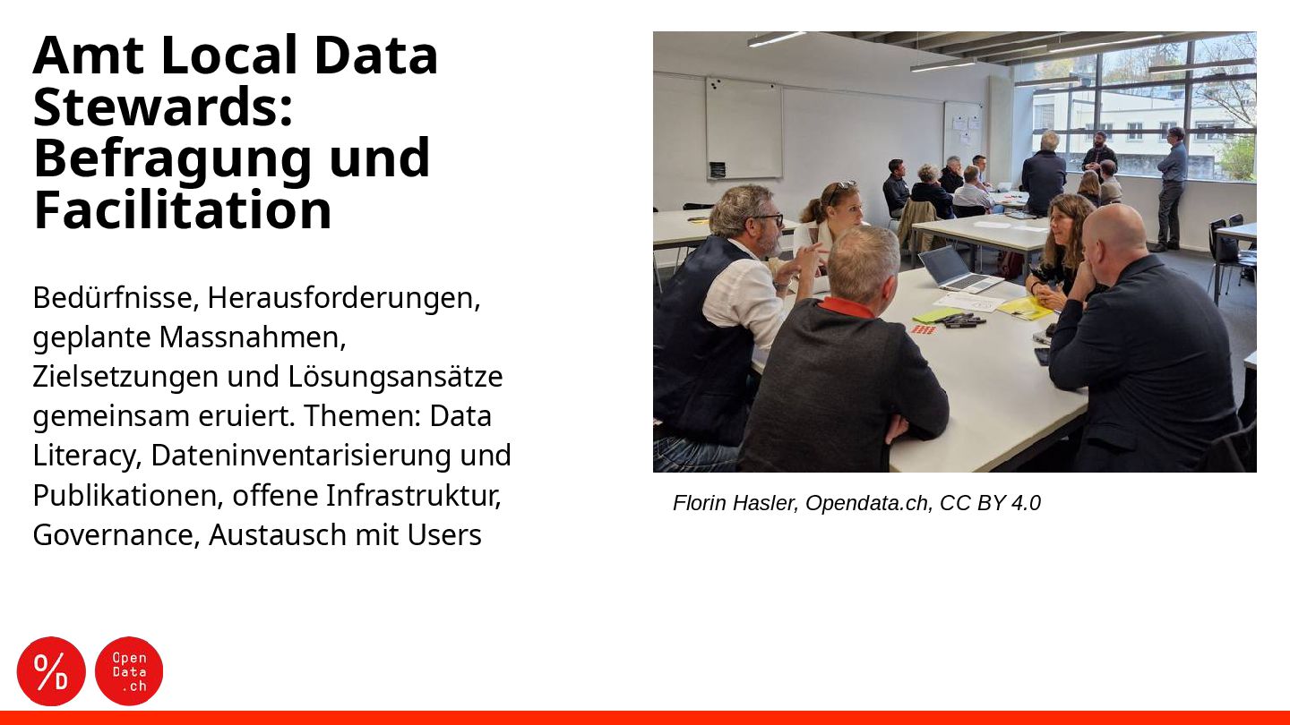 Massnahmen, Zielsetzungen und Lösungsansätze gemeinsam eruiert. Themen: Data Literacy, Dateninventarisierung und Publikationen, offene Infrastruktur, Governance, Austausch mit Users Florin Hasler, Opendata.ch, CC BY 4.0