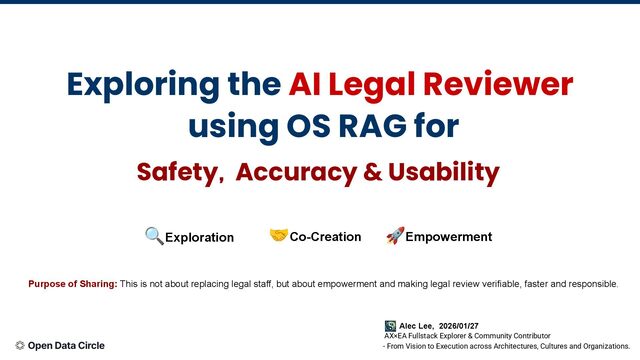 Lee, 2026/01/27 AX×EA Fullstack Explorer & Community Contributor - From Vision to Execution across Architectures, Cultures and Organizations. 🔍Exploration 🤝Co-Creation 🚀Empowerment Safety,Accuracy & Usability Purpose of Sharing: This is not about replacing legal staff, but about empowerment and making legal review verifiable, faster and responsible.