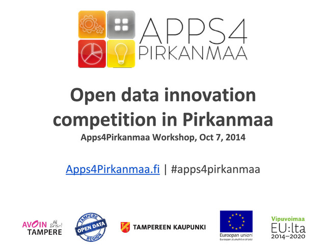 vain. 3. Go Green, Sami Törölä: Sovellus kertoo autoilijalle oikean nopeuden seuraaviin liikennevaloihin niin että niistä päästään tasaisella nopeudella pysähtymättä läpi. 2. Mun Huudi, Mikko Nurmi: Palvelu, jossa kaupungin asukkaat näkevät kootusti naapurustoonsa vaikuttavat asiat ilman tarvetta hakea tietoa kaupungin eri sivuilta. 1. Liikenteen poikkeustilatunnistus, Paula Syrjärinne: Liikenteen poikkeustilanteet tunnistetaan monitoroimalla reaaliaikaista joukkoliikennedataa.