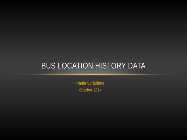 3 – October 6 2014 (Sunday September 7 is missing) • Stored in csv-files • 1 csv-file / day • ~500MB / day • Data is collected from SIRI JSON feed • Sampling frequency typically 1Hz, but sometimes slower, especially during peak traffic hours
