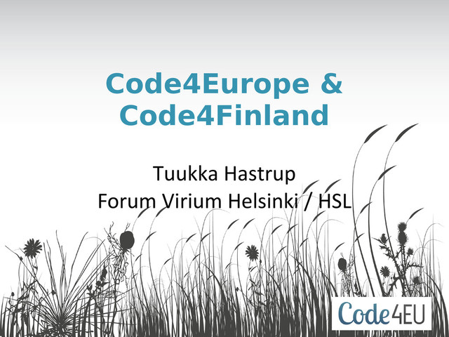 Code4Europe & Code4Finland Tuukka Hastrup Forum Virium Helsinki / HSL