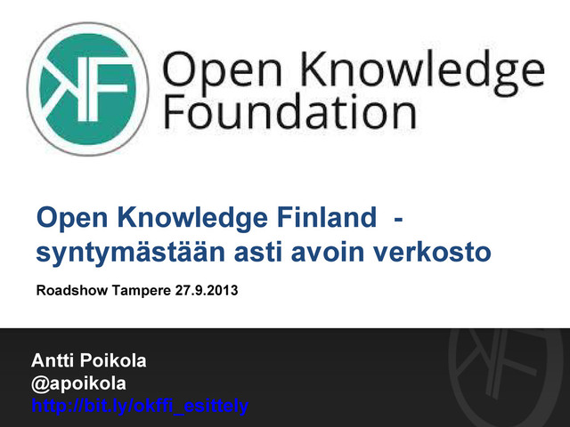 Antti Poikola @apoikola http://bit.ly/okffi_esittely Open Knowledge Finland - syntymästään asti