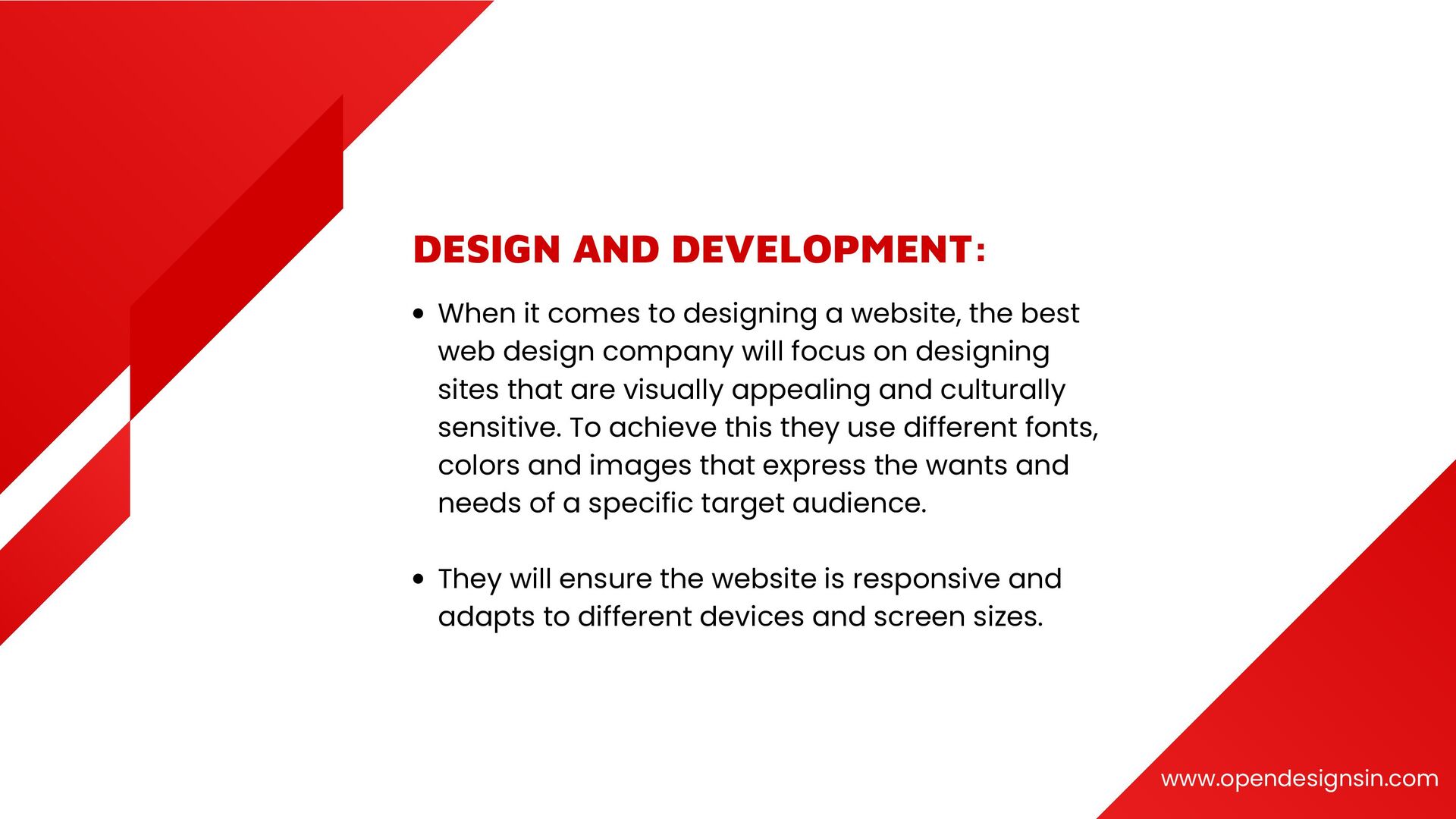 the best web design company will focus on designing sites that are visually appealing and culturally sensitive. To achieve this they use different fonts, colors and images that express the wants and needs of a specific target audience. They will ensure the website is responsive and adapts to different devices and screen sizes. www.opendesignsin.com
