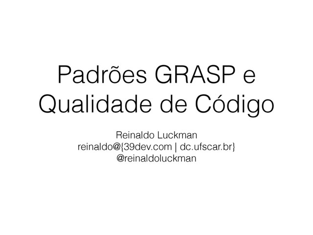 Workshop que foi ministrado pelo grande amigo Reinaldo Luckman (https://br.linkedin.com/in/r31n4ld0) abordando sobre GRASP, exemplos foram baseados para Java mas pode ser contemplados para qualquer linguagem! ;)