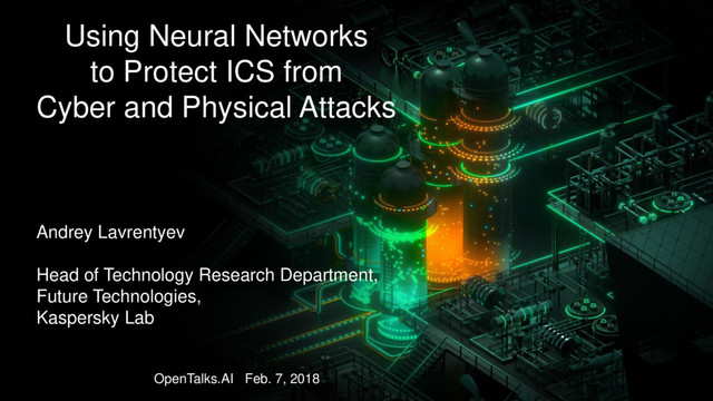 https://www.youtube.com/watch?time_continue=2&v=1z4nNh9kgbU https://ics-cert.kaspersky.com/reports/2018/01/16/mlad-machine-learning-for-anomaly-detection [2] RNN-based Early Cyber-Attack Detection for the Tennessee Eastman Process. ICML 2017 Time Series Workshop, Sydney, Australia, 2017. https://arxiv.org/abs/1709.02232 [3] Multivariate Industrial Time Series with Cyber-Attack Simulation: Fault Detection Using an LSTM-based Predictive Data Model. NIPS 2016 Time Series Workshop, Barcelona, Spain, 2016. http://arxiv.org/abs/1612.06676 [4] MLAD Presentation https://youtu.be/xXWjfYcPi_Q