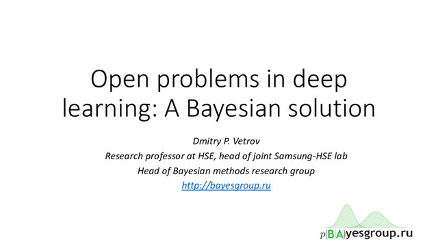 encourage the desired properties in Bayesian DNN: • Sparsity (compression) • Group sparsity (acceleration) • Rich ensembles (improves final accuracy, better uncertainty estimation) • Reliability (robustness to adversarial attacks) • Interpretability (hard attention maps) Techniques to become Bayesian soon • GANs • Normalization algorithms (batchnorm, weightnorm, etc.)