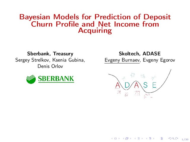 a level of vintages Vintage deposits with the same characteristics (vintage code): Date of opening of a Deposit Deposit currency, term of Deposit Segment of a deposit, sales channel, volume, etc. Has a deposit been prolonged? Forecast monthly change in a vintage volume (churn rate) EARt = V t adj − V t−1 adj V t−1 adj ∈ [−1; 0], t ∈ {1, . . . , T} In total 103932 vintages, and we have only 48 time-series points