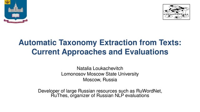 vector, based on the word embeddings: – Concatenation [Baroni et al., 2012] – Difference [Roller et al., 2014] • Train a classifier to predict the semantic relation between x and y: Achieved very good results: more 70% Accuracy • But [Levy et al., 2015]: “lexical memorization”: overfitting to the most common relation of a specific word – Training: (cat, animal), (dog, animal), (cow, animal), ... all labeled as hypernymy – Model: (x, animal) is a hypernym pair, regardless of x y x x y