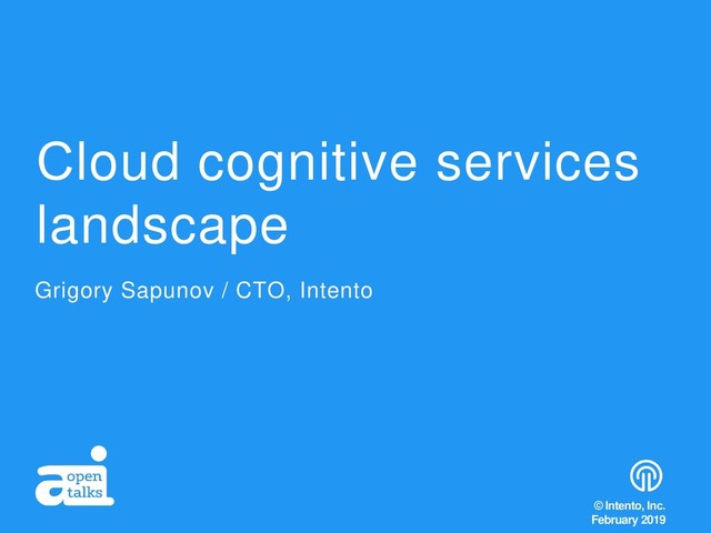 Сloud cognitive services landscape Grigory Sapunov / CTO, Intento ©
