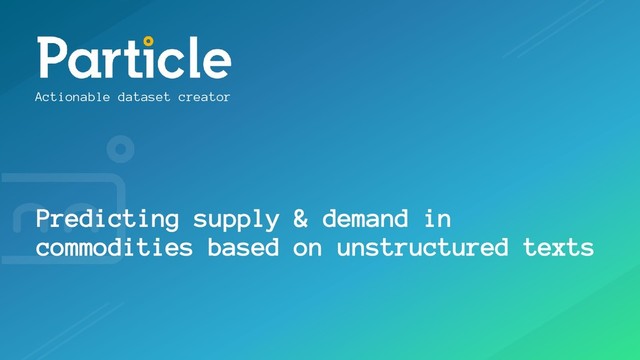 Actionable dataset creator Predicting supply & demand in commodities based