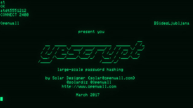 http://www.openwall.com/presentations/BSidesLjubljana2017-Yescrypt-Large-scale-Password-Hashing/