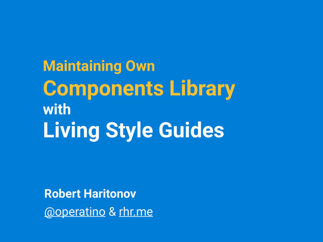 Robert will present a full-depth review of current ways of maintaining own component libraries using Living Style Guide tools. Talk is focused both for developers, who seeks the ways of handling web components and their UI frameworks and web designers, pushing the standardized and consistent design to their projects.
