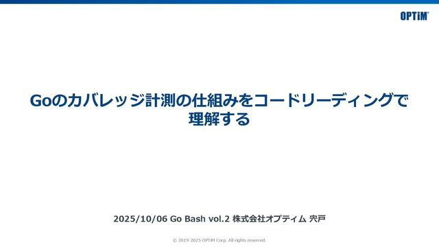 © 2019-2025 OPTiM Corp. All rights reserved. Goのカバレッジ計測の仕組みをコードリーディングで 理解する 2025/10/06