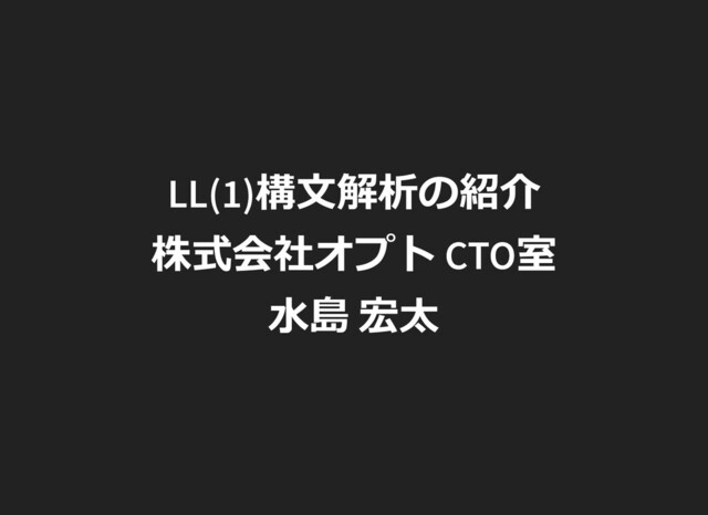 "else" E | I; I ::= [a-zA-Z_] [a-zA-Z_0-9]*; 1⽂字先読みでは決定できない︕ FIRST("if") = {"i"} FIRST([a-zA-Z_]) = {"a",..."Z","_"}; LL(1)構⽂解析では普通、以下のようにこう考える S ::=<IF> <LPAREN> E <RPAREN> E <ELSE> E | <ID> これで1「トークン」先読みで決定できる