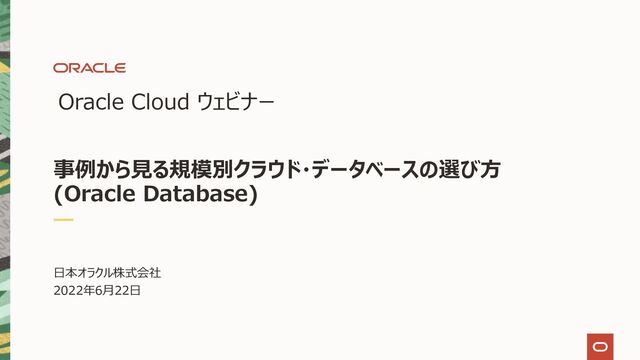 コンテナ K8s, Registry ストレージ Block, File, Object, Archive ネットワーク VCN, LB, VPN FastConnect データ管理 データ管理 GoldenGate Database Migration Data Integration, Catalog データ処理 Data Flow Big Data Autonomous Database Transaction, Data Warehouse データベース Bare Metal, VM Exadata, NoSQL, MySQL, SQL Server アプリケーション開発 サーバーレス Functions, Events API Gateway, Streaming インテグレーション Integration, Apiary アナリティクス Analytics Analytics, Cloud SQL Data Science 開発者 DevOps Low Code Visual Builder Digital Assistant APEX 開発者 Developer API/SDKs Infrastructure as Code Resource Manager Terraform セキュリティ ガバナンス ガバナンス IAM, Policy, Tagging Compartment Cost Analysis セキュリティ IAM, Encryption Vault, DDoS, WAF 監視 Monitoring, Logging Notification, Events, Alarm Copyright © 2022, Oracle and/or its affiliates 8