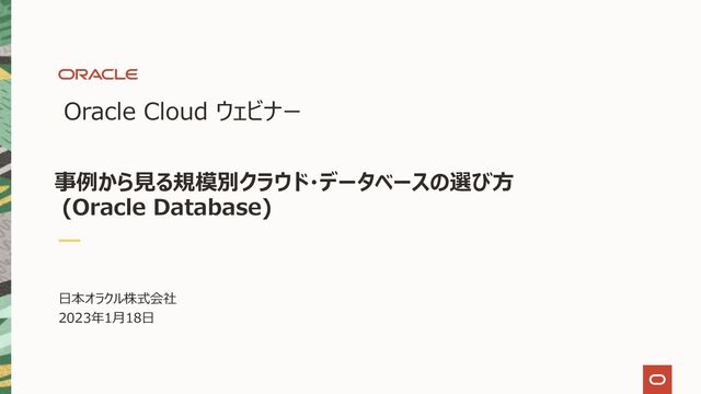 コンテナ K8s, Registry ストレージ Block, File, Object, Archive ネットワーク VCN, LB, VPN FastConnect データ管理 データ管理 GoldenGate Database Migration Data Integration, Catalog データ処理 Data Flow Big Data Autonomous Database Transaction, Data Warehouse データベース Bare Metal, VM Exadata, NoSQL, MySQL, SQL Server アプリケーション開発 サーバーレス Functions, Events API Gateway, Streaming インテグレーション Integration, Apiary アナリティクス Analytics Analytics, Cloud SQL Data Science 開発者 DevOps Low Code Visual Builder Digital Assistant APEX 開発者 Developer API/SDKs Infrastructure as Code Resource Manager Terraform セキュリティ ガバナンス ガバナンス IAM, Policy, Tagging Compartment Cost Analysis セキュリティ IAM, Encryption Vault, DDoS, WAF 監視 Monitoring, Logging Notification, Events, Alarm Copyright © 2023, Oracle and/or its affiliates 17