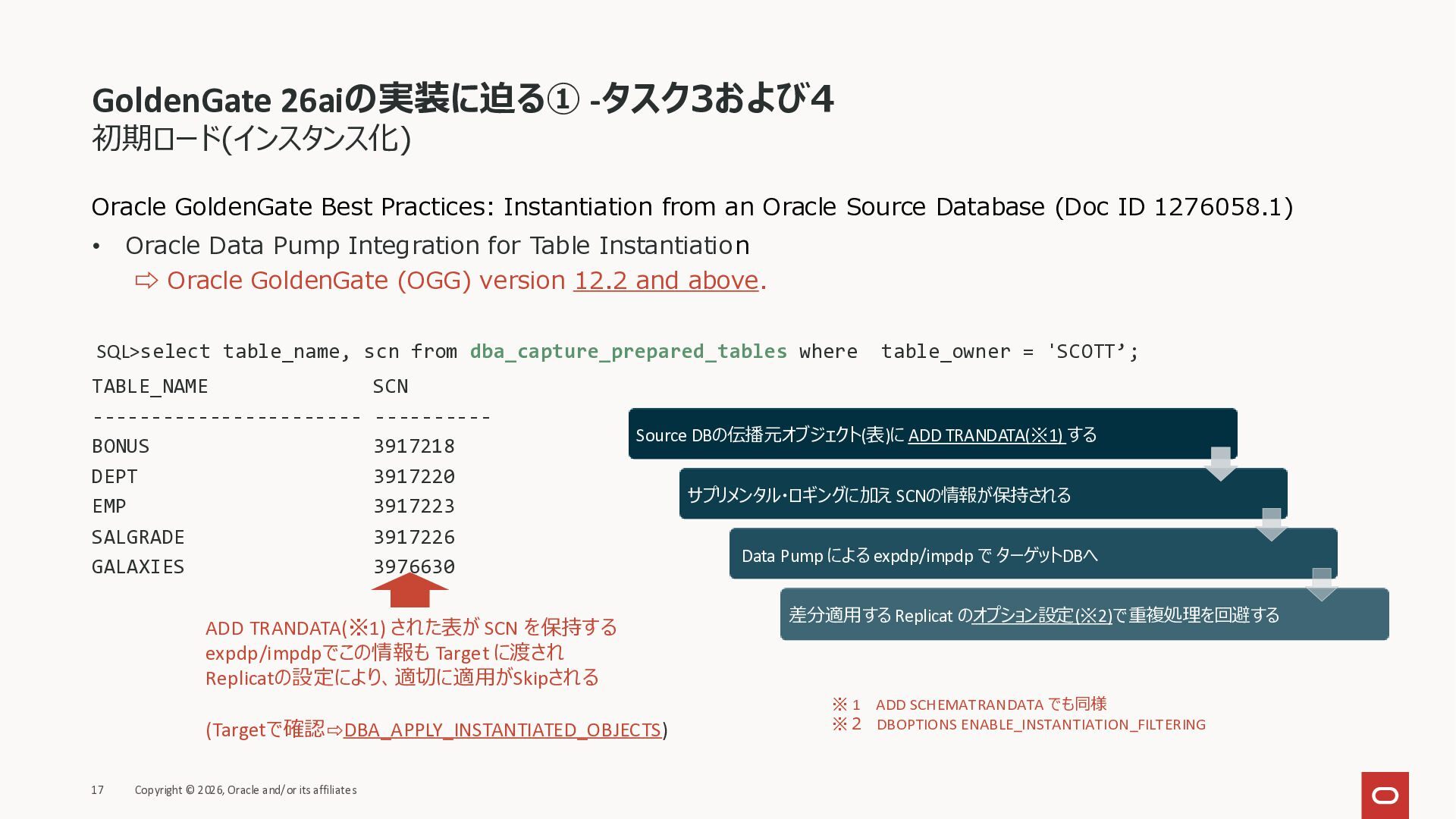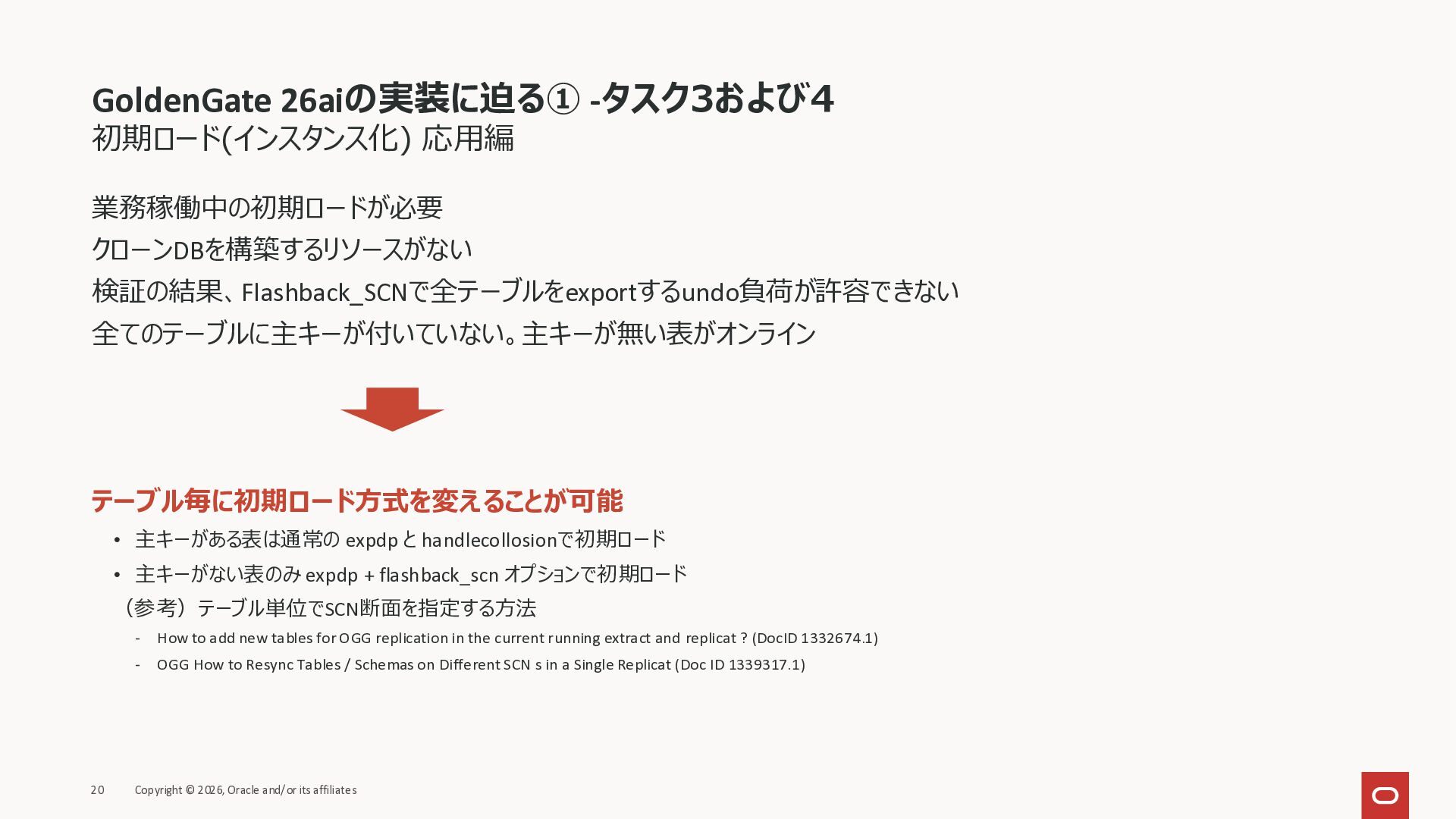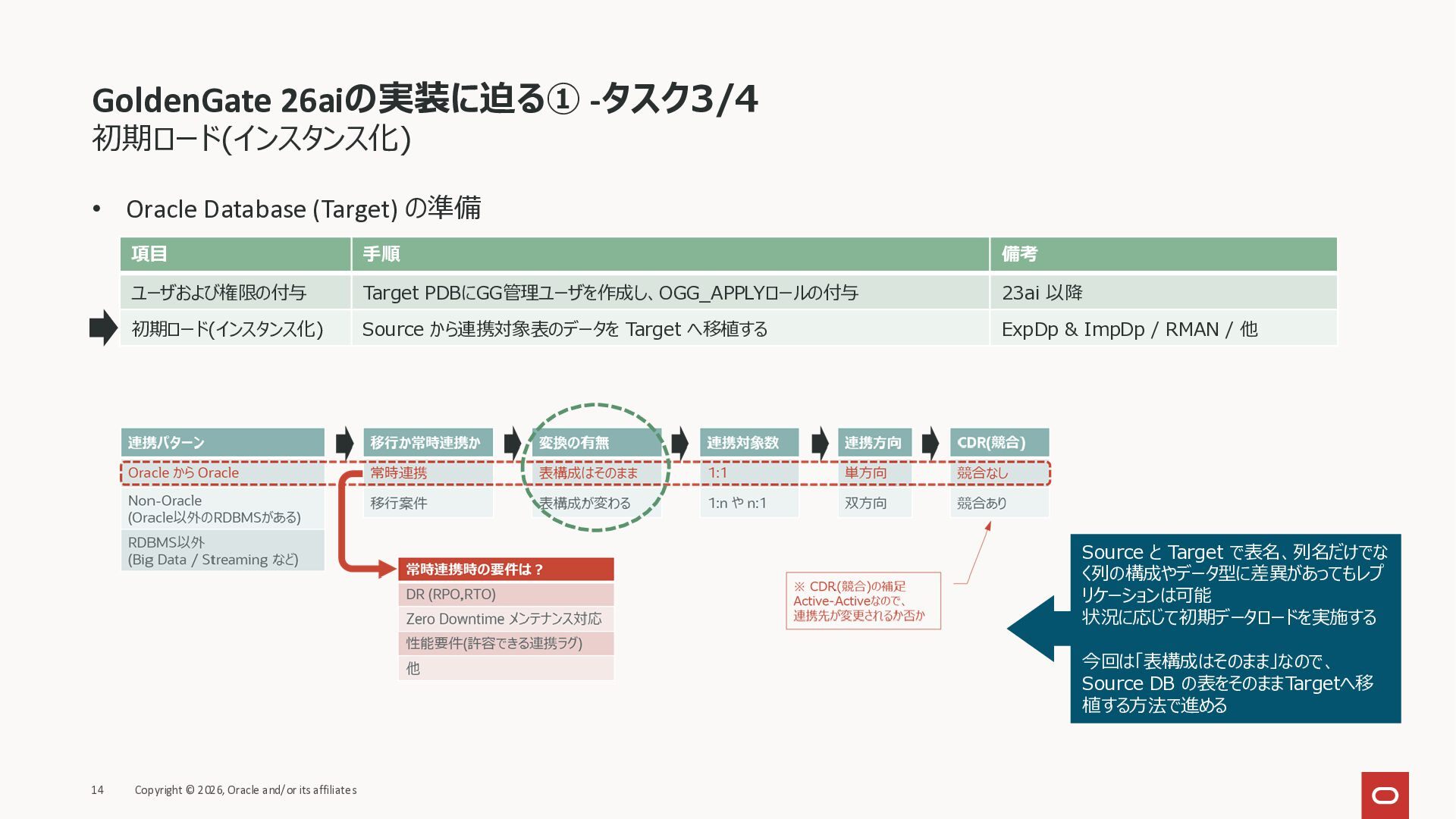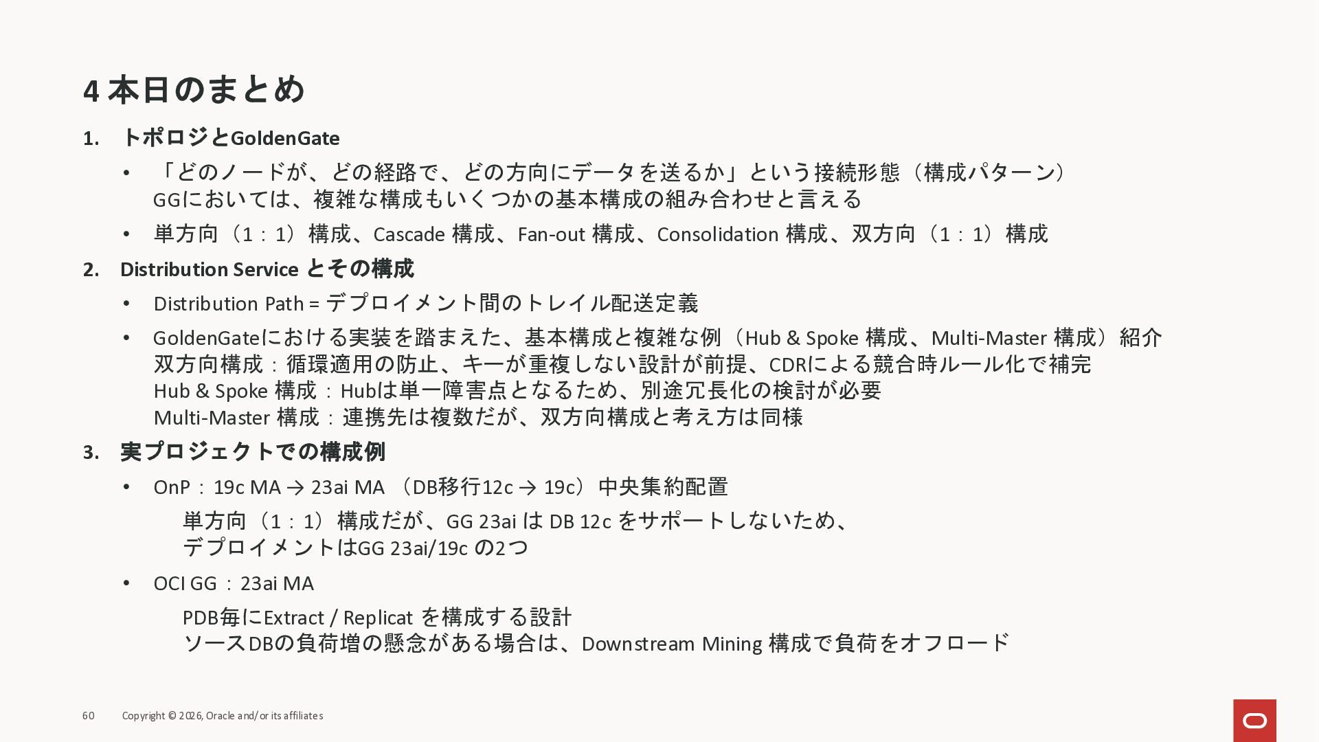 2026年3月26日に実施したOracle Database Technology Night #98 GoldenGate 26ai の実装に迫る② 〜 標準的な工程の解説と現場での実装例紹介で使用した資料です。