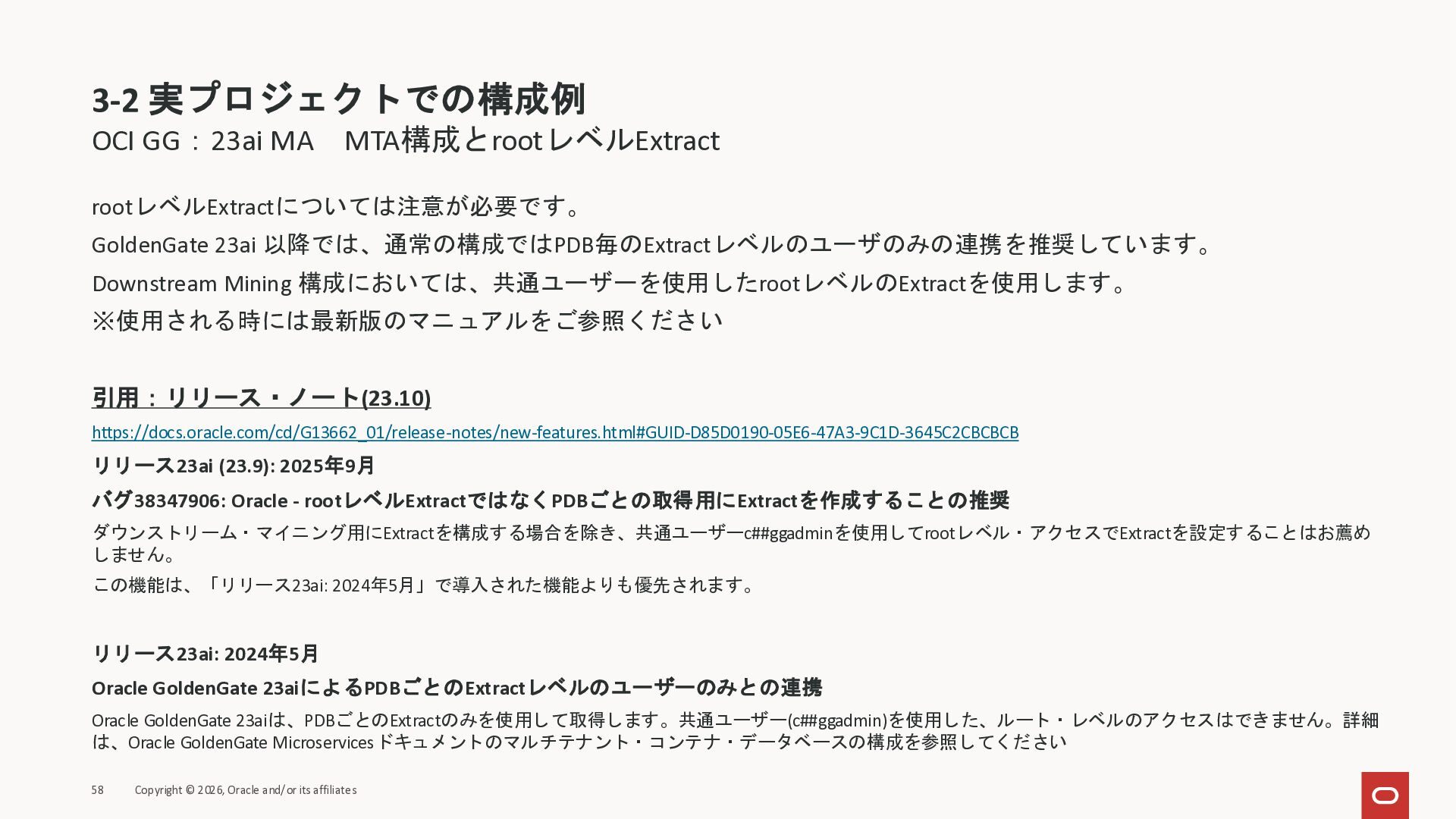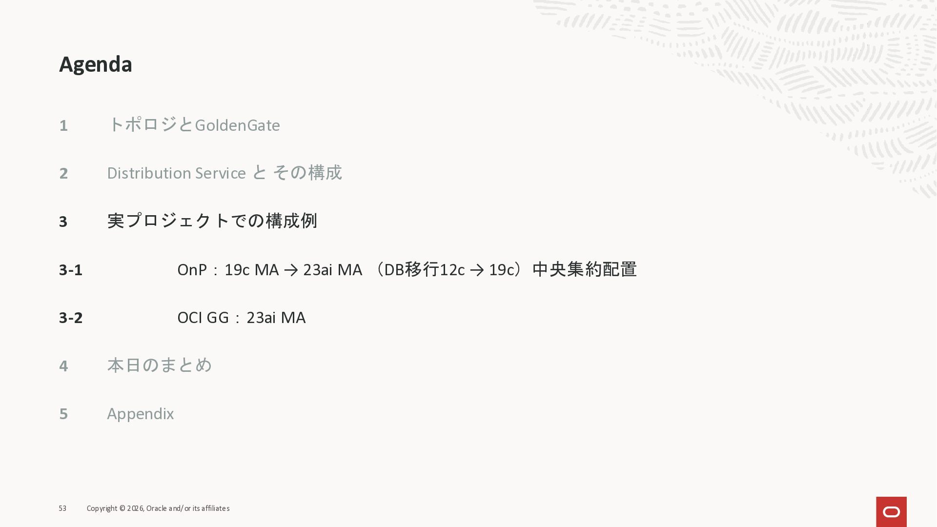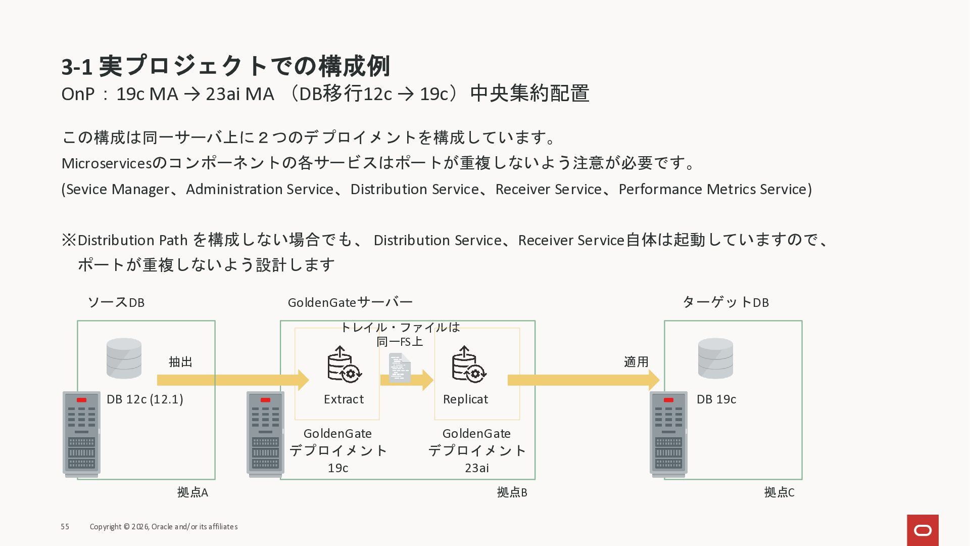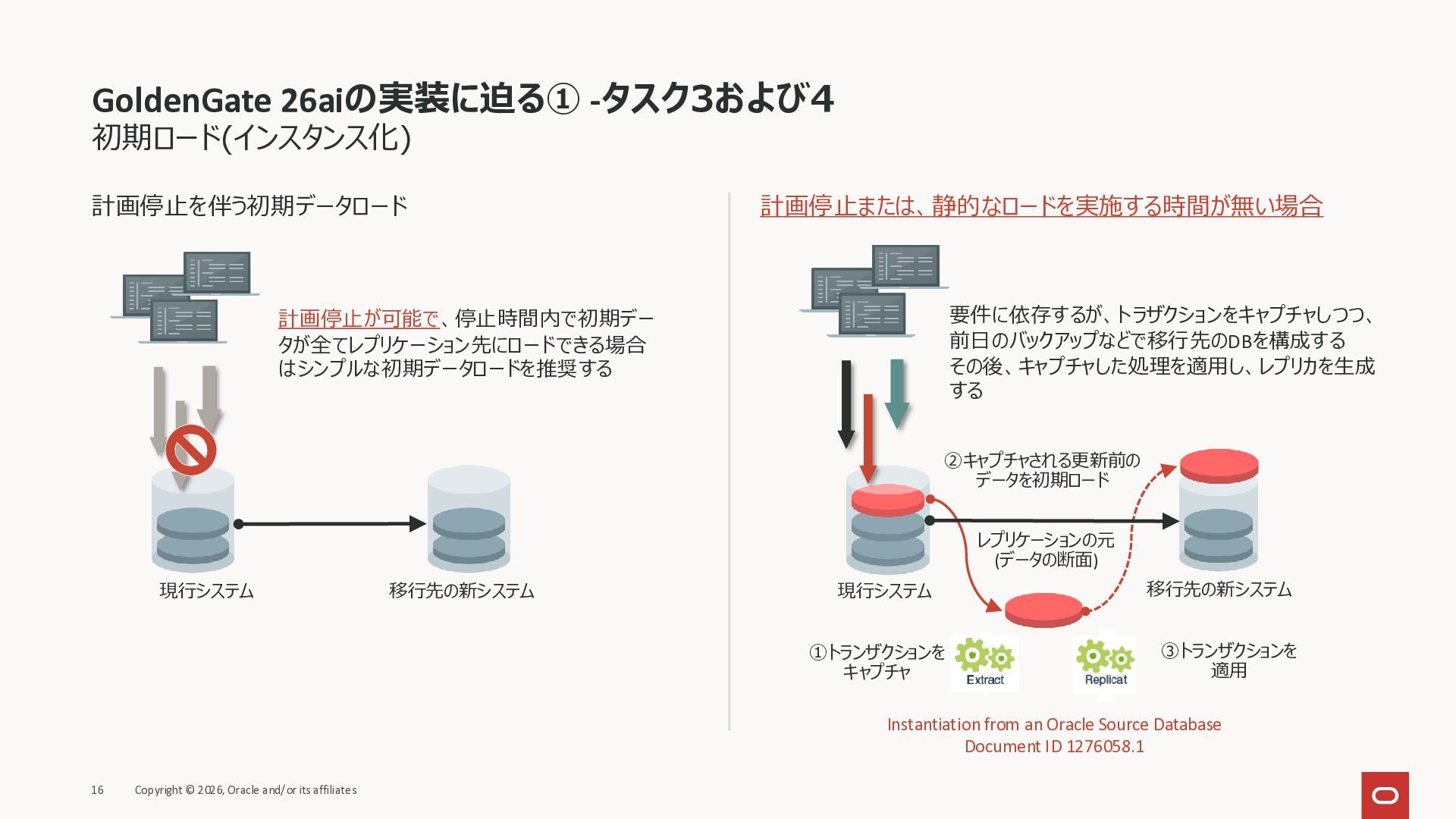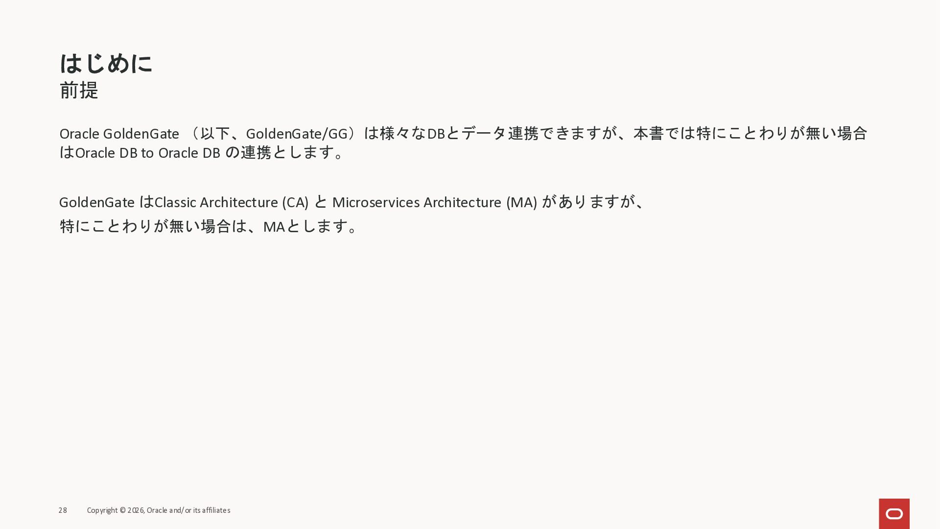 2026年3月26日に実施したOracle Database Technology Night #98 GoldenGate 26ai の実装に迫る② 〜 標準的な工程の解説と現場での実装例紹介で使用した資料です。