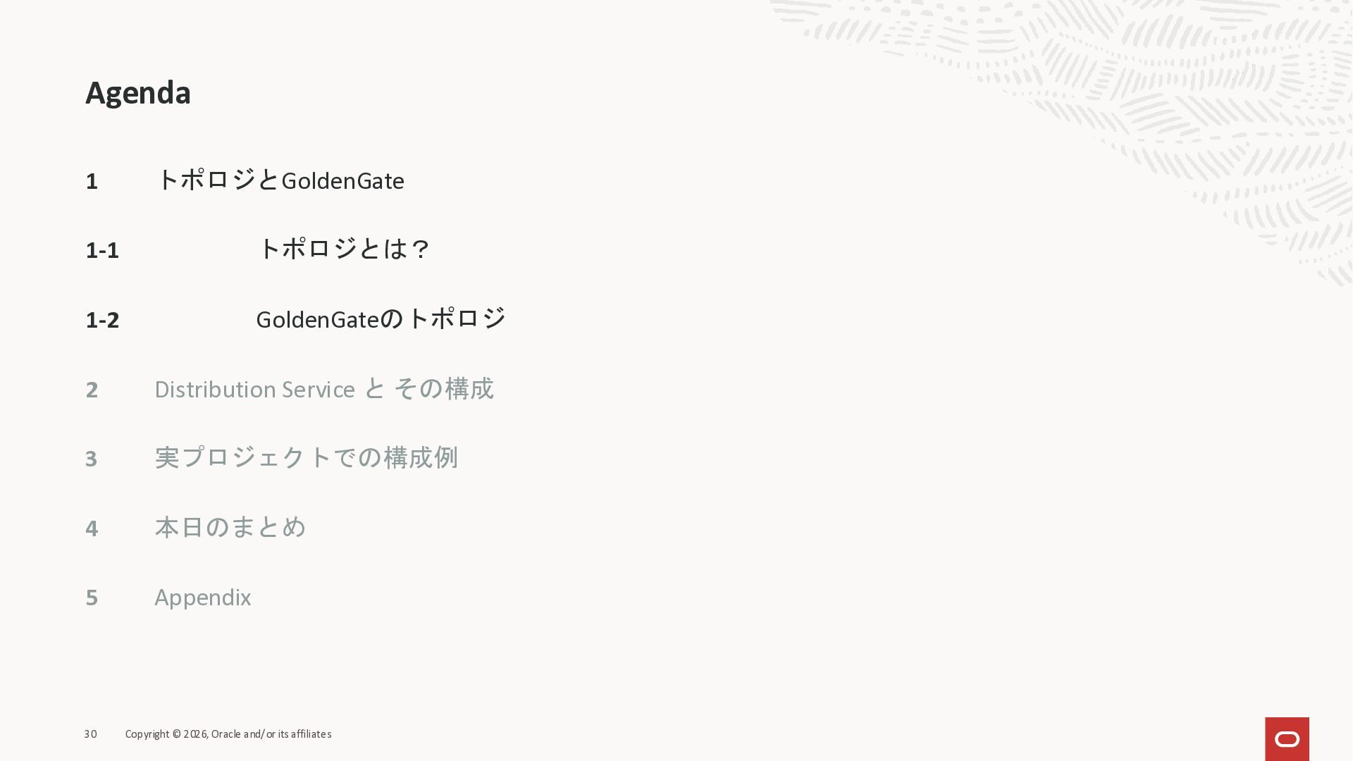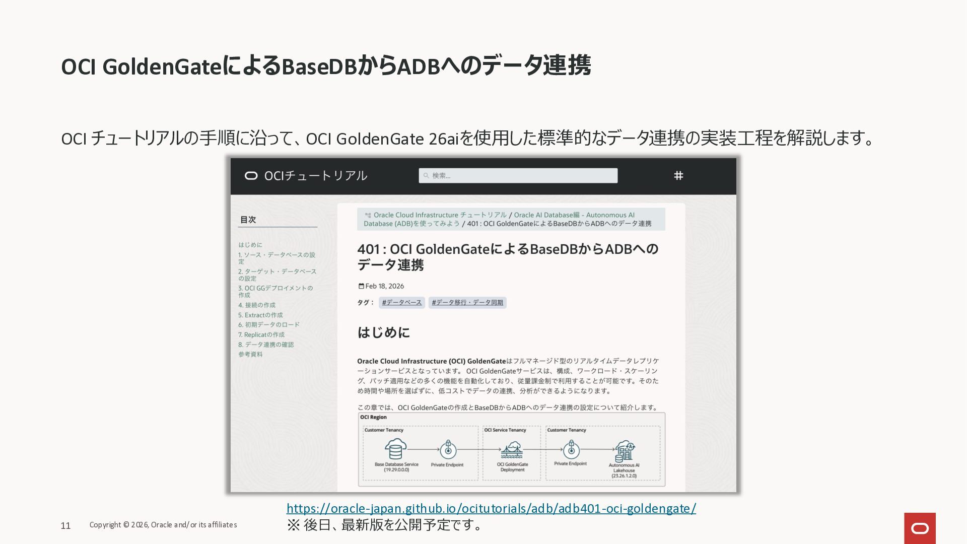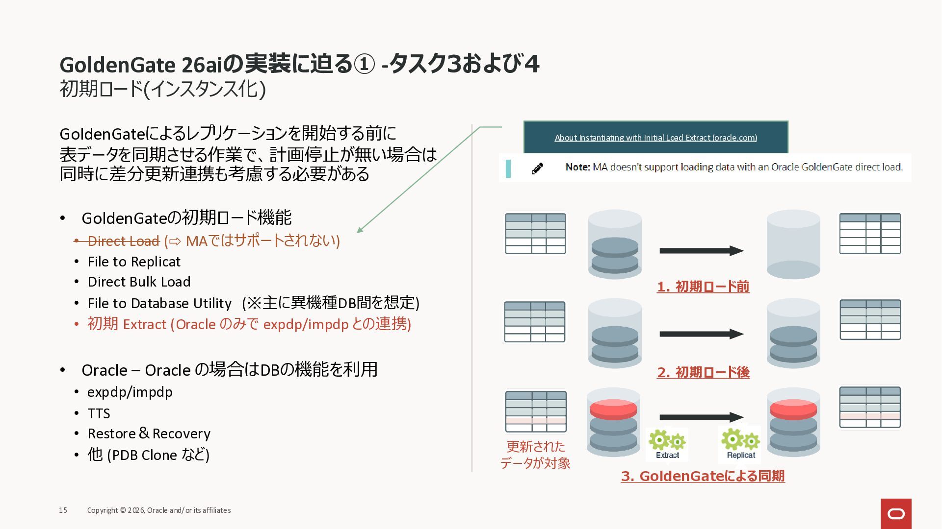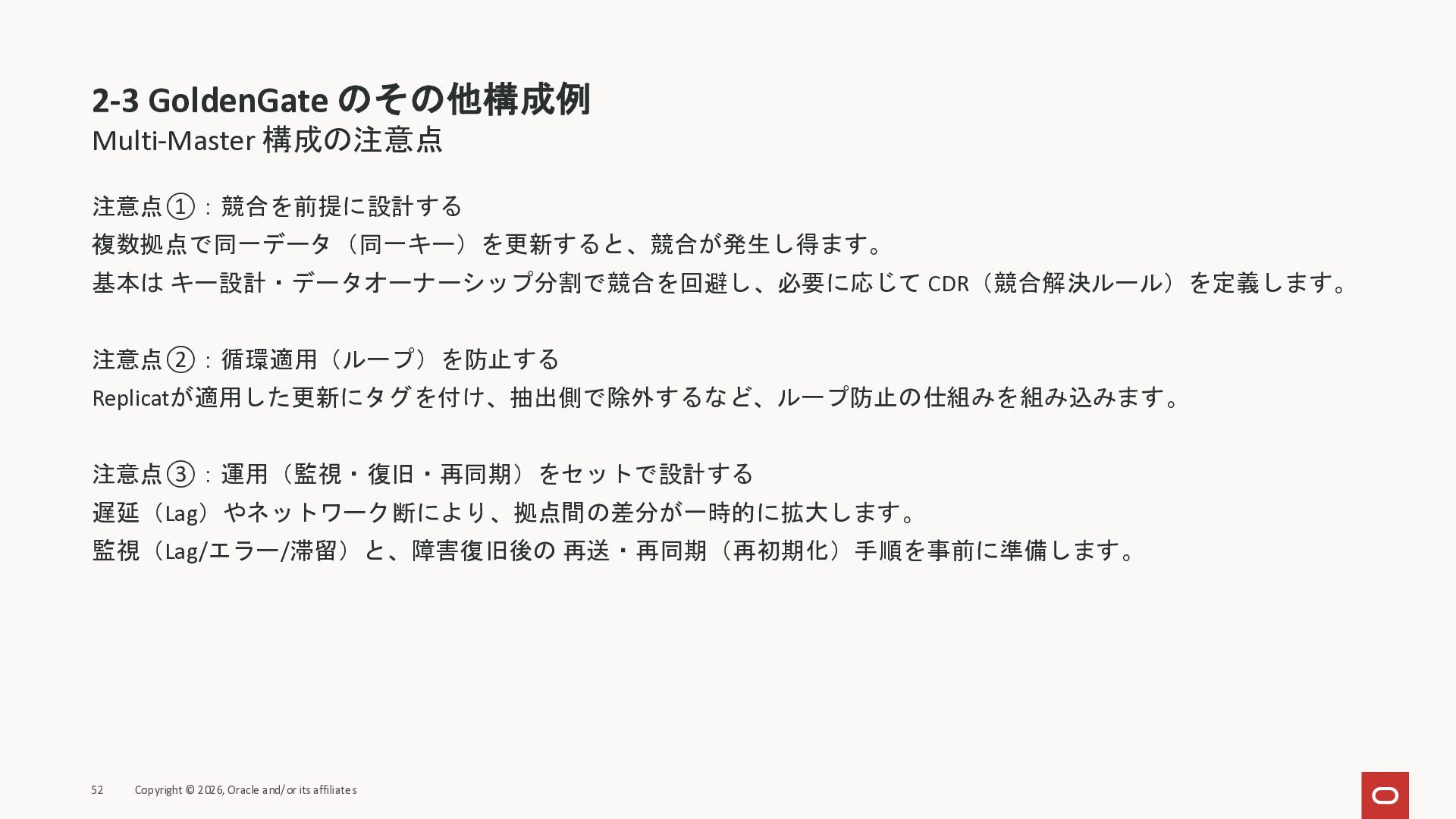 2026年3月26日に実施したOracle Database Technology Night #98 GoldenGate 26ai の実装に迫る② 〜 標準的な工程の解説と現場での実装例紹介で使用した資料です。
